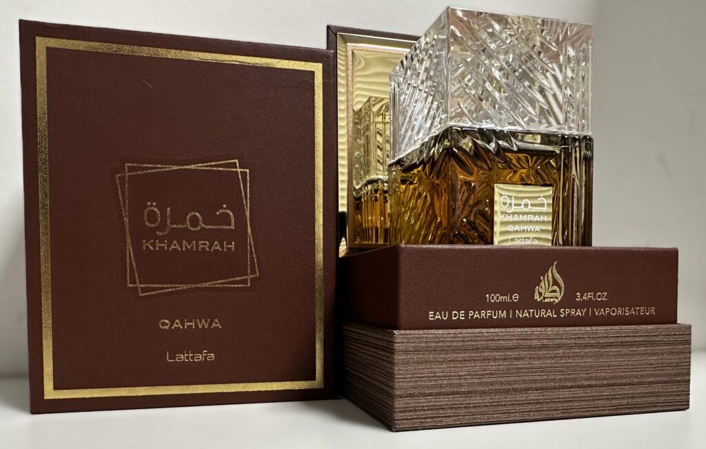 Khamrah ‘with a twist’: “Khamrah is a sweet, boozy-vanilla scent, Khamrah Qahwa is a darker, spicier variation that adds the note of Arabian coffee”